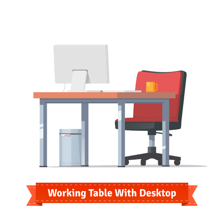 机 椅子 本棚上のデスクトップを快適なホーム職場 フラット スタイルのイラストやアイコン Eps 10 ベクトル のイラスト素材 ベクタ Image
